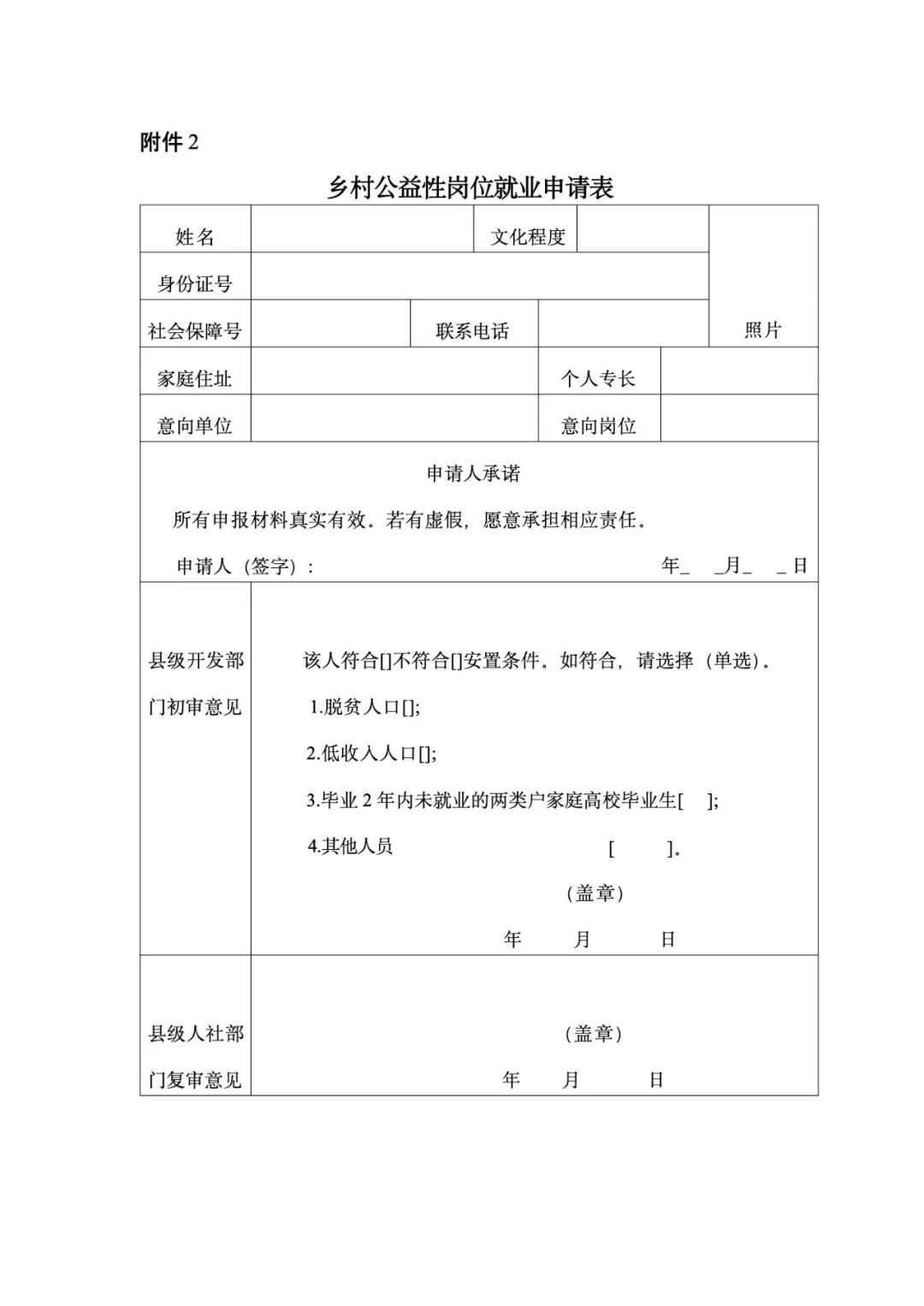 乡村公益性岗位就业申请表